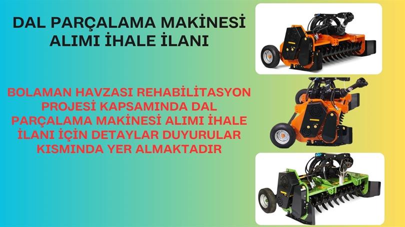 Dünya Bankası kaynaklı Bolaman Havzası Rehabilitasyon Projesi Alt Bileşeni ile 2023 yılında İlimizde uygulanan projeye ait Dal Parçalama Makinesi Alımı İhale İlan Metini, Teknik Şartname ve İhale Dokümanı ilgililere duyurulmak üzere yayımlanmıştır. İhaleye başvuracakların belirlenen süre içerisinde belgelerini İl Tarım ve Orman Müdürlüğü İdari ve Mali İşler Şubesi Muhasebe Birimine teslim etmeleri gerekmektedir. İlgililere ilanen duyurulur.