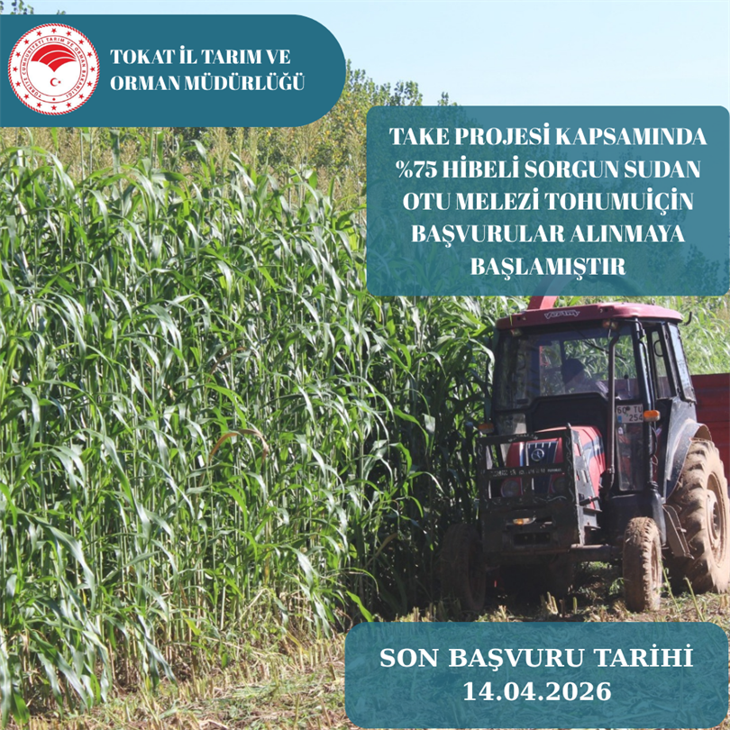 Bakanlığımızca yürütülen “Tarım Arazilerinin Kullanımının Etkinleştirilmesi Projesi'ne göre; İl Müdürlüğümüzce uygulanacak olan “SORGUM SUDAN OTU MELEZİ ÜRETİMİNİN YAYGINLAŞTIRILMASI PROJESİ" kapsamında, % 75 Bakanlık devlet destekli, % 25 çiftçi katkılı olacak şekilde Sorgum Sudan Melezi Otu Tohumu temin edilecektir. Projeden yararlanmak isteyen üreticilerimizin 17/04/2026 tarihi mesai bitimine kadar İl/İlçe Müdürlüklerine başvuru yapmaları gerekmektedir. Başvurular İl Proje Uygulama Komisyonu tarafından değerlendirilecek olup proje öncelikleri aşağıda belirtilmiştir.