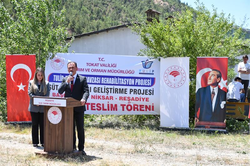 İl müdürü Orhan ŞAHİN yaptığı konuşmada; " TULİP (Türkiye Dayanıklı Peyzaj Entegrasyonu Projesi) dünya bankası kaynaklı Yozgat, Çorum, Tokat, Sivas, Ordu illerinde uygulanmaktadır. Bolaman Havzası Rehabilitasyon Projesi kapsamında ilimiz Niksar, Reşadiye ve Başçiftlik ilçelerimizin havza alanına giren köylerinde 2021 yılından itibaren bitkisel üretim ve hayvancılık konularında birçok proje uygulanmıştır.