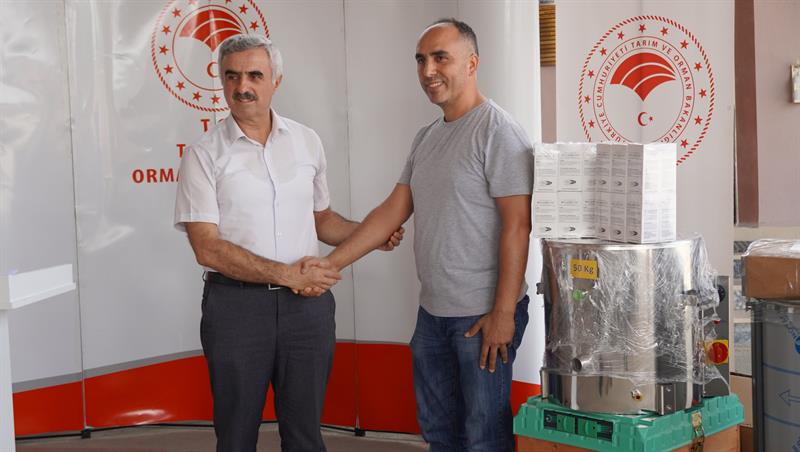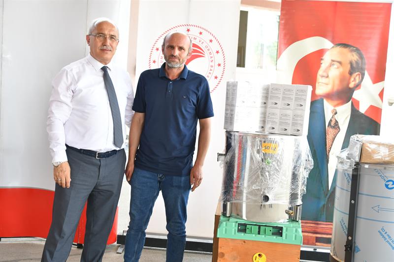 2025 yılında Tokat Valiliğimiz ve Tokat İl Özel idaresi desteği ile arıcılarımıza yaklaşık 2.5 milyon değerinde Bal Sağım Makinesi, Bal Dinlendirme Kazanı ,Ana Arı ve Varroa ilacı alımı yapılmış olup arıcılarımıza bu gün itibariyle dağıtımı yapılacaktır.