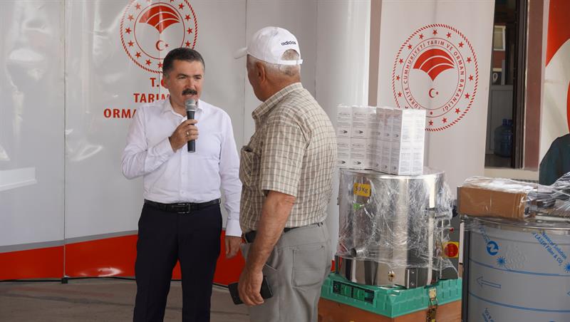 18.07.2025 tarihinde Tokat Valiliğimiz ve Tokat İl Özel idaresi desteği ile arıcılarımıza yaklaşık 2.5 Milyon TL değerinde Bal Sağım Makinesi, Bal Dinlendirme Kazanı, Ana Arı ve Varroa ilacı alımı yapılmış olup arıcılarımıza dağıtımı yapılmak üzere Tokat İl Tarım ve Orman Müdürlüğü Hayvan Sağlığı Kampüs Alanında program düzenlendi.