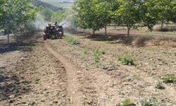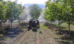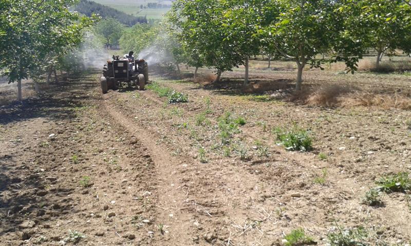 İlçemiz Hüseyin Gazi köyünden Durmuş Kılıç' a ait 20 dekar alanda modern tarım teknikleri ile kurulu 7 yaşında Chandler ceviz bahçesinde atomizör ile hastalık ve zararlılarla mücadele için ilaçlama yapıldı. İlaçlama zamanını belirlemek üzere ilçe müdürlüğünün erken uyarı sisteminden alınan verilerden yararlanıldı. Buna göre; ceviz iç kurdu, ceviz antraknozu, çiçek burnu çürüklüğü ilaçlamaları yapılarak, üreticinin hastalık ve zararlılardan etkilenmemiş ürün alması hedeflendi. İlaçlama sırasında ilaç atma teknikleri, doz ve ilaç çeşitleri hakkında bilgilendirme yapıldı. 1600 litre kapasiteli atomizör ile 750 adet ağacın yeşil ve gövde aksamı daha ince zerreler halinde ilaçlandığından bir önceki klasik makinalarla yapılan ilaçlamalara göre daha az su harcandı su ve yakıt tasarrufu da sağlanmış oldu.