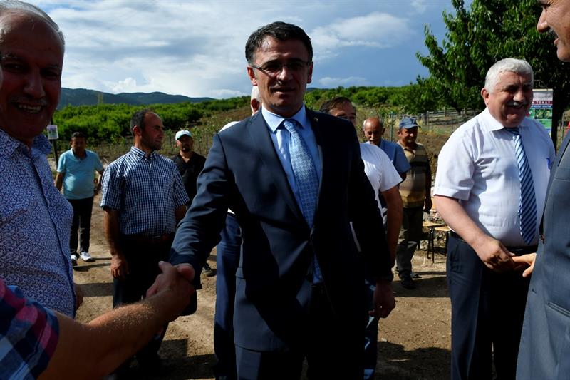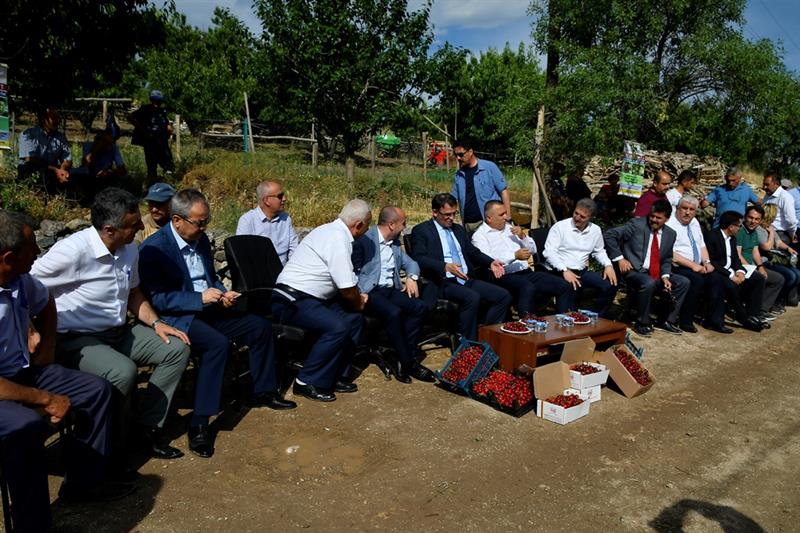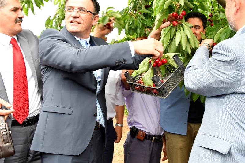 Vali Dr. Ozan Balcı, törenin ardından kiraz çiftçisi ile bir araya gelerek, çiftçinin sorun ve taleplerini dinledi.