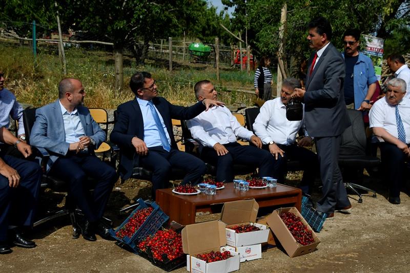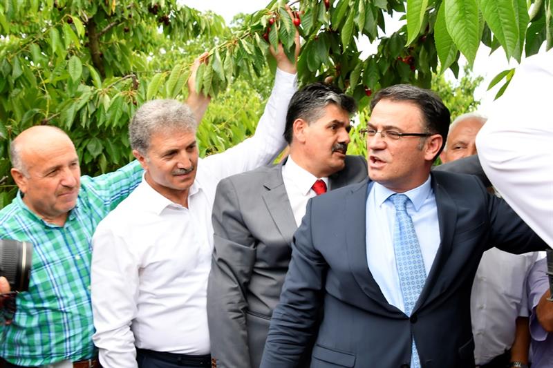 Kiraz yetiştiricileri, sıkıntılarını dinleyen ve çözüm üreten Vali Dr. Ozan Balcı'ya çiftçinin sorunları ile yakından ilgilendiği için teşekkür ettiler.