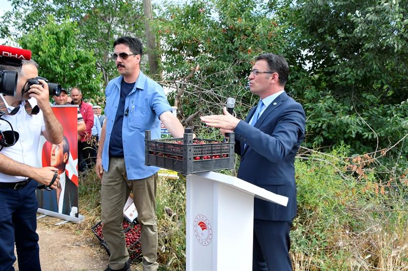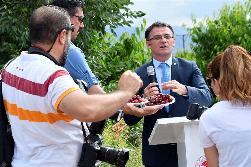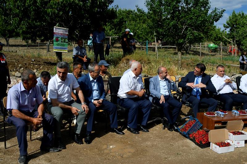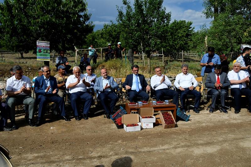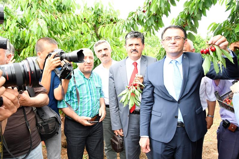 Yapılan konuşmaların ardından kiraz bahçesi giren Vali Dr. Ozan Balcı ve beraberindeki protokol mensupları sembolik olarak kiraz hasadı yaptı. STK temsilcileri ve çiftçilerle birlikte kiraz dalını tutan Vali Dr. Ozan Balcı, "Bu dalı tutmak çiftçiye dost olmak demek. Bu dalı tutmak tarım dostu olmak demek. Bu dal tarımın parlayan yıldızı olan Tokat'ın ifadesi" diye konuştu.