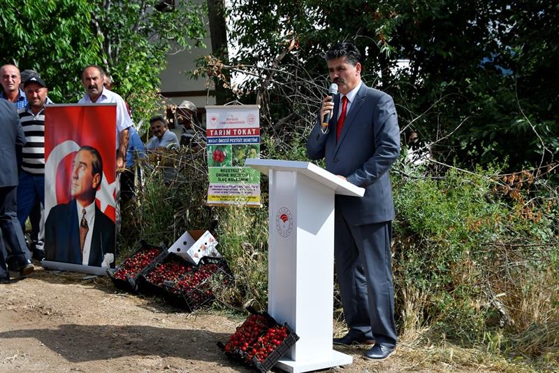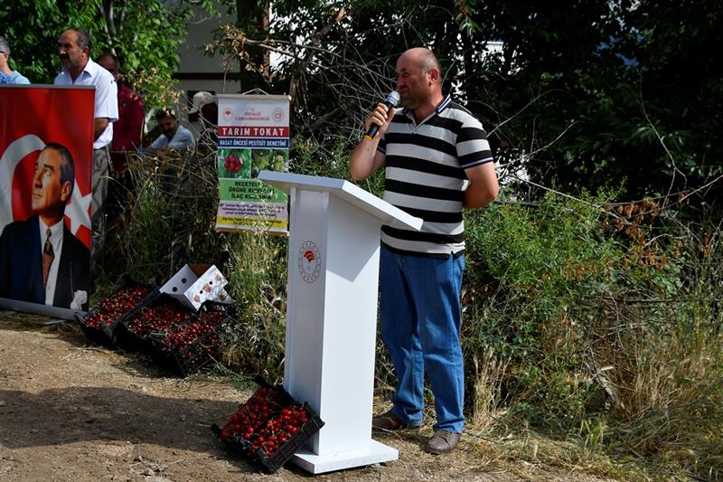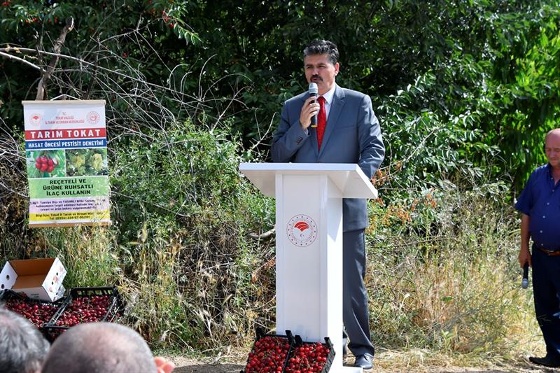 İl Tarım ve Orman Müdür V. Ümit OK bir konuşma yaparak şunları söyledi. "Tokat ili 1.007.200.ha yüzölçümü olup, içerisinden 2 tane ırmağın geçtiği topraklarının büyük kısmının sulanabildiği 360.985 ha. tarım yapılan mümbit 7 büyük ovası ile polikültür tarımının yapıldığı ve 83 çeşit ürünün yetiştirildiği bir ildir. 230 rakımından 1500 rakımına kadar tarım yapılmaktadır. Tarım arazilerinin %66'sı tarla bitkileri 2410 ha. 12.500 ha. sebze, 8500 ha. meyve 6000 ha. bağ 163 ha. örtüaltı üretimi yapılmaktadır. Ayrıca meyve yapılan alanların %4'ü 566 ha. kiraz üretimi gerçekleştirmekte olup 2018 yılında 9000 ton kiraz üretimi ile ilimiz ekonomisine 45.000.000-TL katkı sağlamıştır.