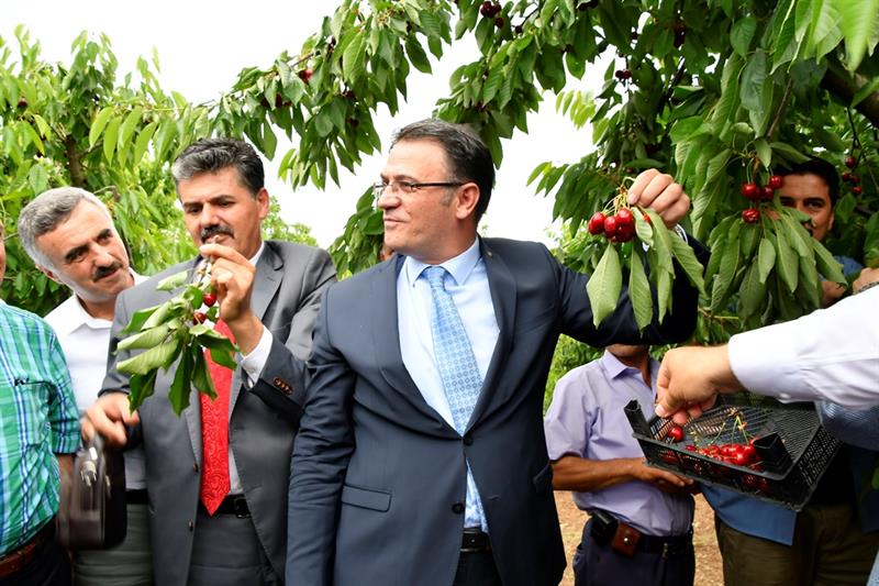 Kocacık çiftçisinin geçim kaynakları arasında yer alan kiraz yetiştiriciliği ile ilgili çiftçiden bilgi alan Vali Dr. Ozan Balcı, bir süre üreticilerle sohbette bulundu.