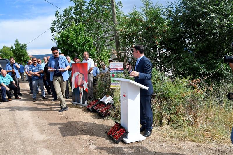 Törende örnek kiraz çiftçisi Cemil Arslan ilk konuşmayı yaparak " köyümüzü ve bizleri onurlandıran Sayın Valimize, Tarım ve Orman Müdürlüğüne, törene katılan protokol üyelerine teşekkür ediyorum. Biz en iyi kirazı yetiştiriyoruz, ancak sorunlarımızın çözülmesini ve önümüzün açılarak desteklenmek istiyoruz. İlgilerinden dolayı sayın Valimize teşekkür ediyoruz" dedi.