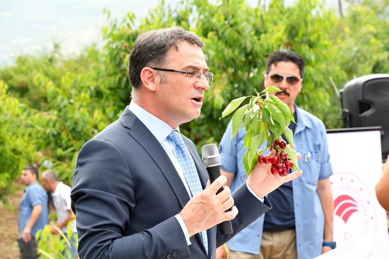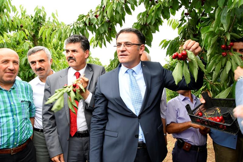 Düzenlenen Kiraz Hasat Töreninde Tokat Valisi Sayın Dr. Ozan BALCI; "Kiraz hasadında Tokat ili, alan ve miktar olarak çok değil ama Türkiye'nin en kaliteli, en lezzetli kirazı Tokat'ta yetiştiriliyor. Tokat kirazının rengi, kokusu ve rayihası ile bir sanat harikası gibidir. 775 bin hektar ovasıyla Tokat'ın Türk tarımının parlayan yıldızı olacaktır. Akdeniz'de tarım anlamında Antalya, Mersin ne ise kuzeyde de Tokat'ın da bu anlama geleceği çok parlaktır. Tokat'ta çok kaliteli ürünler yetişmektedir. Çok kıymetli yapraklarımız var bir numara. Daha kalitelisi var mı? Yok. Çiftçimiz yapraktan 250 milyon lira civarında gelir elde ediyor. Çiftçimiz inşallah 1 milyar lira gelir elde edecek. 2-3 yıl içinde de asma bahçelerinin hepsini bitireceğiz, yaklaşık 10 bin dönüm daha dikeceğiz. Böylece asmada çiftçimize gelir getireceğiz. Kiraz da Türkiye'de miktar anlamında bir numara değiliz ama kalite anlamında bir numarayız. Hem kalite hem de alan ve üretim anlamında kirazı da bir numara yapacağız. Tokat'ı seracılık anlamında bir numara yapacağız. 7 tane kıymetli ovamız var. Tokat tarımsal üretimin başkenti olacak . 370 bine yakın küçükbaş, 270 bine yakın da büyükbaş hayvan ile Tokat'ın hayvancılıkta da iyi durumda olmasına rağmen bu yetmez, daha çok çalışacağız. Tarım Tokat projesi ile Tokat'ta her kesimin Tokat tarımı için tek yürek olmuştur. Bizim burada çiftçiyi zenginleştirmekten başka yolumuz yok. 7 tane dünyanın en güzel ovası var. Kelkiti ve Yeşilırmağı var. Devletin imkanları ile yapılan bir sürü barajımız ve göletimiz var. Süreyya Bey, Alpu ve Çekerek Barajlarının kanalları da bittiği zaman üretim daha çok artacak. Bunların yanın da arazi toplulaştırmalarımız devam ediyor. Birkaç yıl içinde bitince bizim çiftçimiz yüzde 50 kara geçecek, üretim artacak. Biz tarımın, çiftçinin dostuyuz. Tarımın, çiftçinin derdini dert ediniyoruz. Çiftçimizi zenginleştirip, cebine para koymak zorundayız. Üretimin dostuyuz. Üretime destek vermekten de büyük gurur duyuyoruz. Tarımda parlayan yıldız olacak Tokat. Parmakla gösterilecek. Daha sistemli çalışmamız lazım. Çiftçinin derdi bizim derdimiz, bizim meselemiz. Çiftçinin derdi konusunda Tokat'ta birlik ve bütünlük var." şeklinde konuştu.