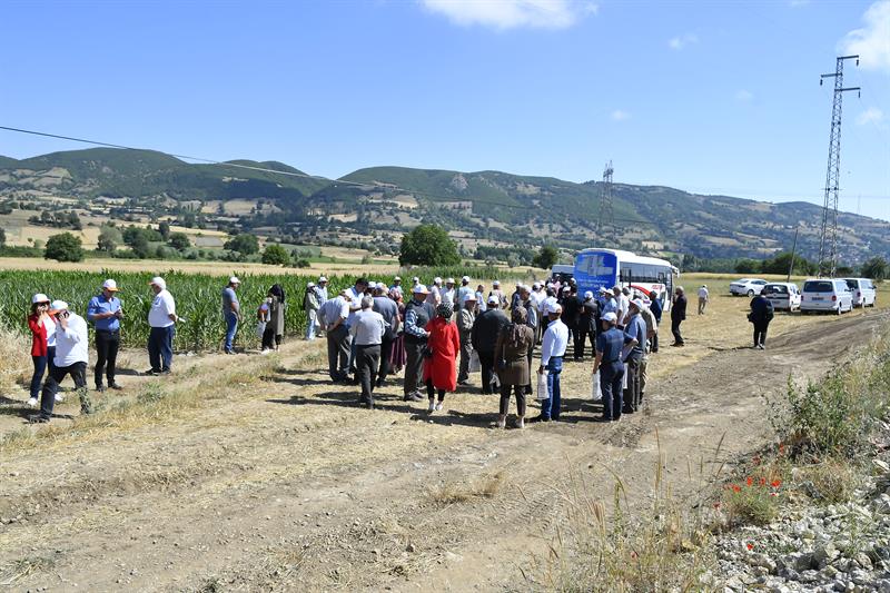 Daha sonra Anıza kaldırmadan yapılan doğrudan ekim parselinde incelemeler yapıldı. Bahri Dağdaş Uluslararası Tarımsal Araştırma Enstitüsü Müdürü Dr. Fatih Özdemir yürütülen proje ve çalışmalar hakkında teknik ve soruları cevaplandırdı. bilgi verdi. Konuşmasında teknik bilgiler verdi. " Anıza yapılan doğrudan ekim, iklim değişikliği ve kuraklık açısından önemlidir. Toprağı mümkün olduğu kadar az işlemek önemlidir. Toprak canlıdır ve cm2 sinde milyonlarca canlı, organik madde bulunmaktadır. Ne kadar ez ve yüzeysel işlem yapılırsa toprak yapısı bozulmamış olur. Bu sistemin en önemli özelliği anıza toprağın işlenmeden ekilmesi ve münavebe yapılmasıdır. Bu parselin bir kısmı normal bilinen yöntemlerle ekilmiş ve bir kısmı da anıza doğrudan ekilmiştir. Arada fark göremiyoruz. Toprak işleme maliyeti azalmıştır. Toprak tavını beklemeden ekim yapılmaktadır. Rüzgar ve su erozyonu önlenmektedir.