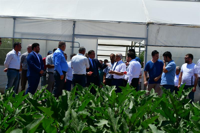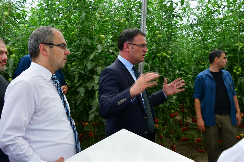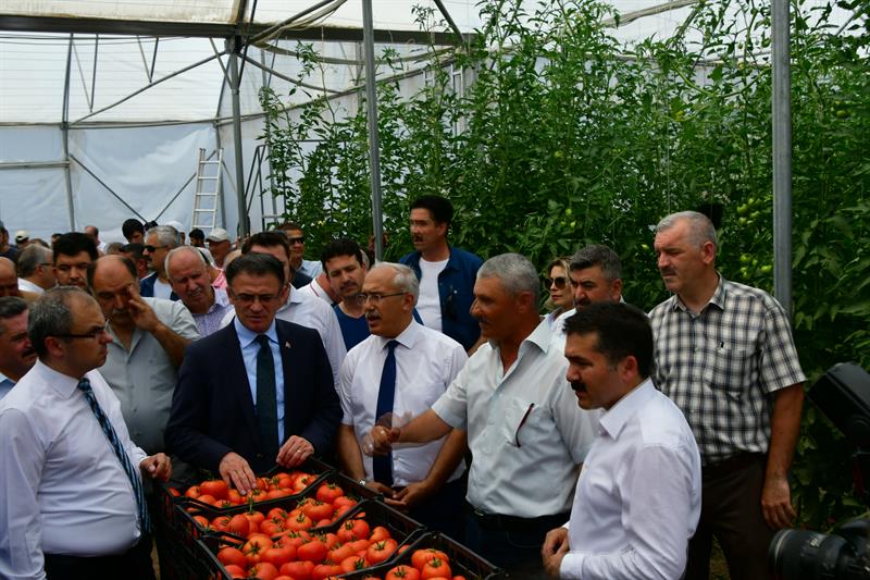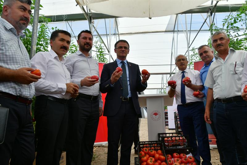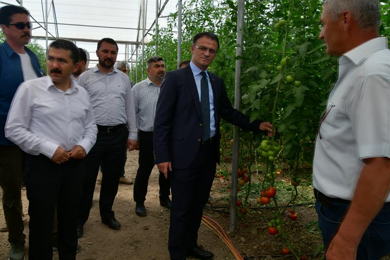 Valimiz Sayın Dr. Ozan BALCI, Tokat tarımını destekleyen ve emek veren herkese teşekkür ederek şunları söyledi: "Çiftçinin zenginleşmesi ve Tokat'ın kıymetli ovalarının değerlendirilmesi için Tarım Tokat kapsamında çalışmalar yürütülmektedir. Tarım Tokat diye bir proje başlattık. Tokat ovalarıyla, nehirleriyle Türk tarımının parlayan yıldızı. Tokat'ı tarımın başkenti yapacağız. Valiliğimizin koordinesinde bütün unsurların İl Tarım ve Orman Müdürlüğü ve İlçe Müdürlüklerinin, Kırsal Kalkınma Kurumunun, DSİ'nin, yerel yönetimlerin ve ticaret sanayi odasının kaymakamlıkların, çiftçilerin, ziraat odalarının yani bütün kurumlarımızın gücüyle tarımı destekliyoruz. Hedefimiz Tokat'ı Türk tarımının parlayan yıldızı yapmak. Çiftçimizi zenginleştirmek. Bugünde Turhal'a geldik. Sağ olsun Fatih bey çiftçimizin domates serası var. Seracılığa da büyük destek veriyoruz. İnşallah Tokat'ı seracılıkta da merkez yapacağız. Tokat tarımı ile ovalarıyla Türkiye'nin parlayan bir yıldızı. Seracılık başta olmak üzere Tokat yaprağı da çok önemli biliyorsunuz. Niksar'ın cevizi ile çileğiyle, Artova'nın nohutluyla, fasulyesiyle yaklaşık 84'e yakın tür sebze ve meyvenin yetiştiği bir yer burası. Yani Tokat aslında Tarım memleketi. Bizim buraya geliş sebebimizde çiftçimizin dostu olduğumuzu göstermek. Çiftçinin yanında olduğumuzu, onların ihtiyaçlarını ve problemlerini dert ettiğimizi ve bunları çözmeye gayret ettiğimizi göstermek. Tarımı önemsiyoruz, insanların zenginleşmesi için, Tokat'taki esnafımızın, ticaret erbabımızın ve diğer kesimlerin zenginleşmesi için tarım çok önemlidir. Devlet olarak her zaman çiftçiye destek vereceğiz. Tokat 775 bin dönüm ovalarıyla, Yeşilırmak ve Kelkit'iyle, nehirleriyle Türkiye'nin kıymetli tarım havzalarına sahip bir bölgesidir. Hayvancılıkta Türkiye'nin sayılı illerinden biridir. İnşallah daha da büyüyecek. Hedefimizde ihracata dayalı tarımsal sanayinin temellerini atmak var. Çiftçimizi daha zenginleştireceğiz. Çiftçinin problemlerini çözmek aslında tüketicinin de problemlerini çözmektir. İnşallah ürünlerimiz kalite olarak, nitelik olarak daha da artacak ve Tokat'ın bu lezzetli ürünlerini Türk tüketicisine sunacağız. Türkiye'nin en lezzetli şeftalisi ve kirazı burada oluyor. En güzel domatesleri, yaprakları Tokat'tadır. En güzel aromaya sahip cevizleri Tokat'tadır. Sayamayacağım kadar en lezzetli ve güzel ürünler Tokat'tadır. Bunu kim üretiyor, çiftçimiz üretiyor. Tarım teşkilatlarımızda buna canla, başla destek veriyor. İdare olarak da devlet olarak da biz bunları derdi dert ediniyoruz. İşi sahiplendik. İnşallah daha da güzel olacak." dedi.