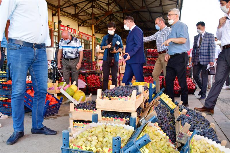 Tokat Yaş Sebze ve Meyve Toptancı Halini ziyaret ederek, hal esnafı ile sohbet