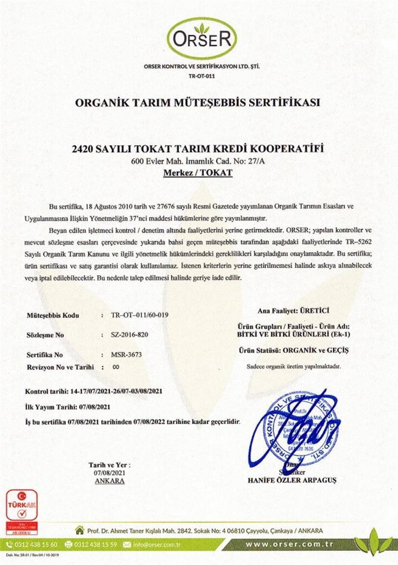 İl Tarım ve Orman Müdürü Orhan ŞAHİN vermiş olduğu demeçte; İlimizdeki organik tarım faaliyetleri 2000'li yıllarda başlamıştır. İl Özel idaresinden Kontrol ve Sertifikasyon hizmet bedelleri karşılanarak 1 işletme ile organik tarıma başlanılmıştır. 2017 yılına gelindiğinde; ÇATAK programı çerçevesinde İl Müdürlüğümüzün öngördüğü lokasyonlardaki işletmelerin organik tarıma geçmesi sağlanmış ve organik tarım kültürünün ilimiz çiftçilerinde benimsetilmesi sağlanmıştır. Ortalama 70 işletme/yıl olarak Kontrol ve sertifikasyon giderlerinin Bakanlığımız genel bütçe imkânlarından karşılanması sağlanmış, tüm üretim girdileri faydalanıcı işletmelerce öz sermaye olarak karşılanmıştır. 2017-2020 yılları arasında ödenen KSK hizmet bedeli toplamı 58.552,0 ₺'dır.